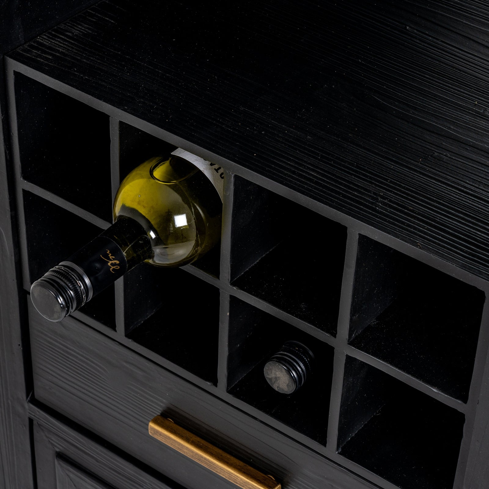 A sleek black tall drinks unit designed to bring a stylish focal point to any living or dining space. Finished in a bold black tone, this unit combines modern design with practical storage, making it perfect for organising and displaying your favourite bottles, glassware, and bar accessories.